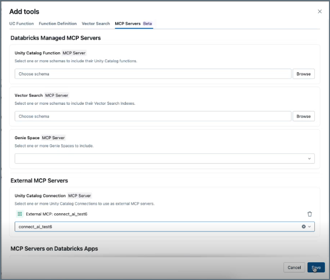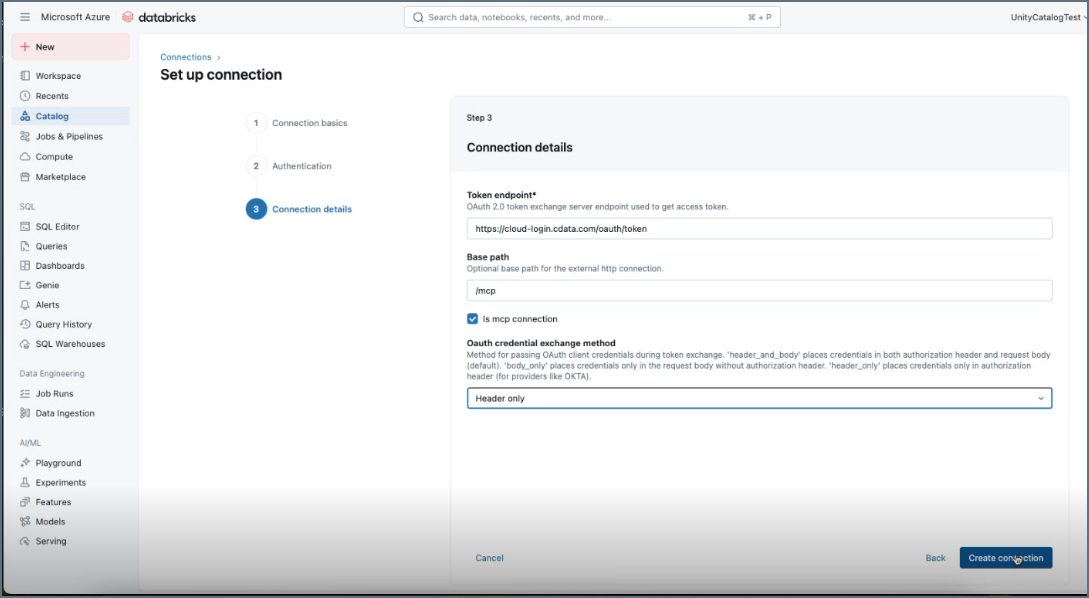 Follow these steps to connect to Connect AI in Databricks MCP Marketplace: